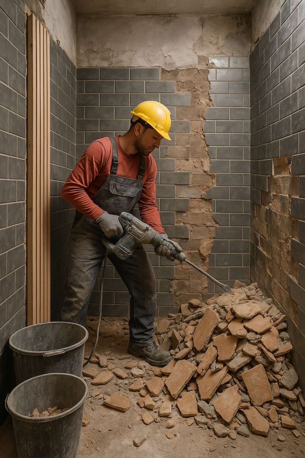 Entfernung alter Fliesen sowie Rückbau von Badezimmern, Küchen, Wohn-und Schlafräumen